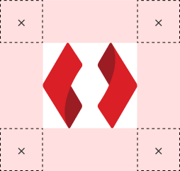 ‘x’ boundary around the Codeweavers icon should never be smaller than 20px² in digital or 8mm in print.